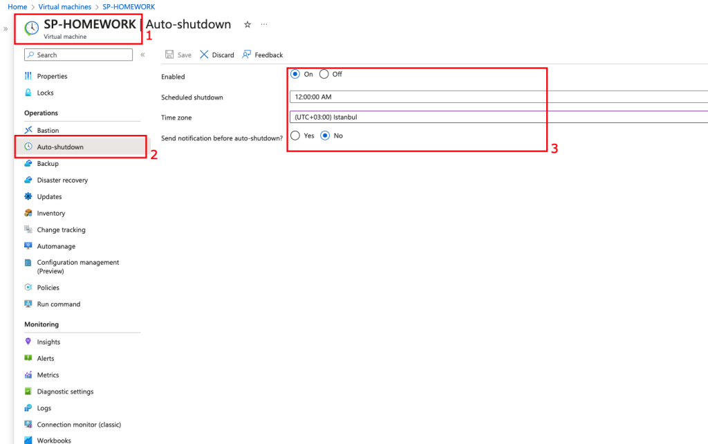 Azure Cloud ortamında bulunan sanal makinemizin düzenli olarak ya da belirlediğimiz bir zamanda kapanmasını istiyorsak aşağıdaki adımları uygulayabiliriz