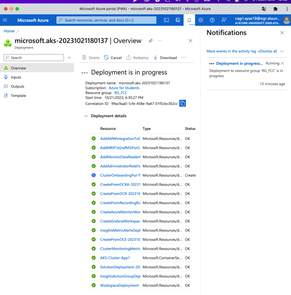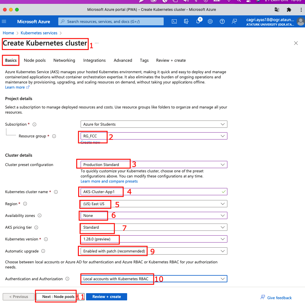 Konteyner tabanlı uygulamaları otomatikleştirmek ve yönetmek için kullanılan açık kaynaklı bir platformdur. AKS, konteyner teknolojisiyle çalışır. Konteynerler, uygulamaları hafif ve taşınabilir bir şekilde paketler. Kubernetes kümesi oluşturma, yönetme, yükseltme ve bakım süreçlerini otomatikleştirir. Uygulamalarınızı hızla dağıtabilir ve ihtiyaca göre ölçeklendirebilirsiniz. Kaynakları optimize ederek maliyetleri düşürür. Azure, yalnızca kullanılan kaynaklar için ücretlendirme yapar. Ayrıca Azure ekosistemiyle mükemmel entegrasyon sağlar. Diğer Azure hizmetleriyle kolayca çalışabilir. Veri ve ağ güvenliği için çeşitli önlemler alır. Azure Security Center gibi araçlarla ek güvenlik sağlanabilir. CI/CD süreçlerini kolayca entegre eder. Azure DevOps veya diğer CI/CD araçlarıyla uyumludur. İhtiyaca göre kümenizi ölçeklendirme imkanı sunar. Uygulamanızın taleplerine yanıt verebilir. Kesintisiz uygulama çalışmasını sağlar. Birden fazla bölgede yüksek kullanılabilirlik konfigürasyonları sunabilir. Azure CLI, kubectl, Visual Studio Code gibi araçları destekler. Bu araçlarla AKS’i yönetmek daha kolaydır. Performansı izlemek ve otomatik ölçeklendirme yapmak mümkündür. Azure Monitor gibi araçlarla performansı takip edebilirsiniz.