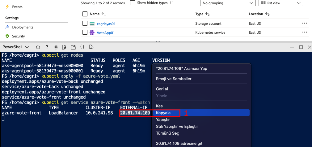 Buradaki örnekte ise Azure üzerinde AKS ile bir “Vote App” uygulamasının dağıtımını sağlıyor olacağız.