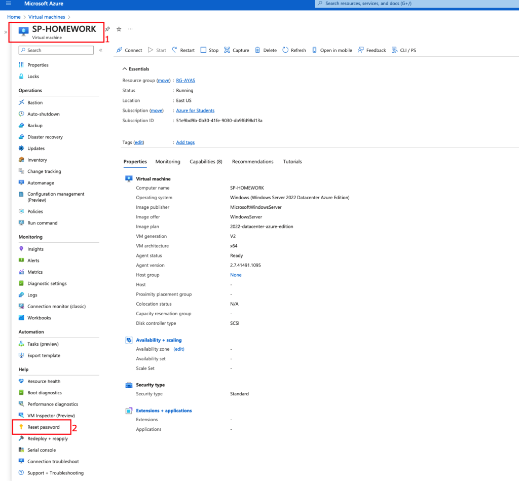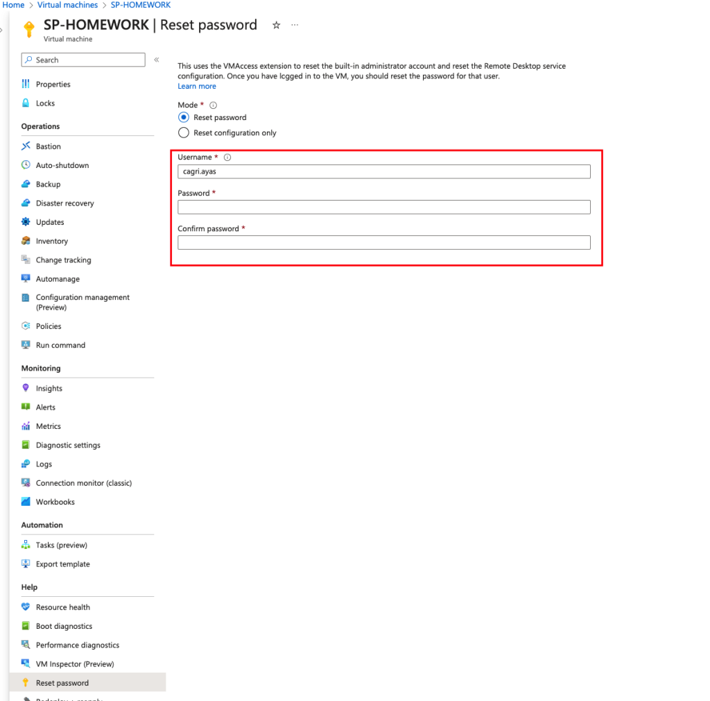 Sanal makinenin şifresini sıfırlama işlemi Azure Portal’da doğrudan sanal makinenin üzerinden yapılır. İşte bu işlemi gerçekleştirmek için adımlar: